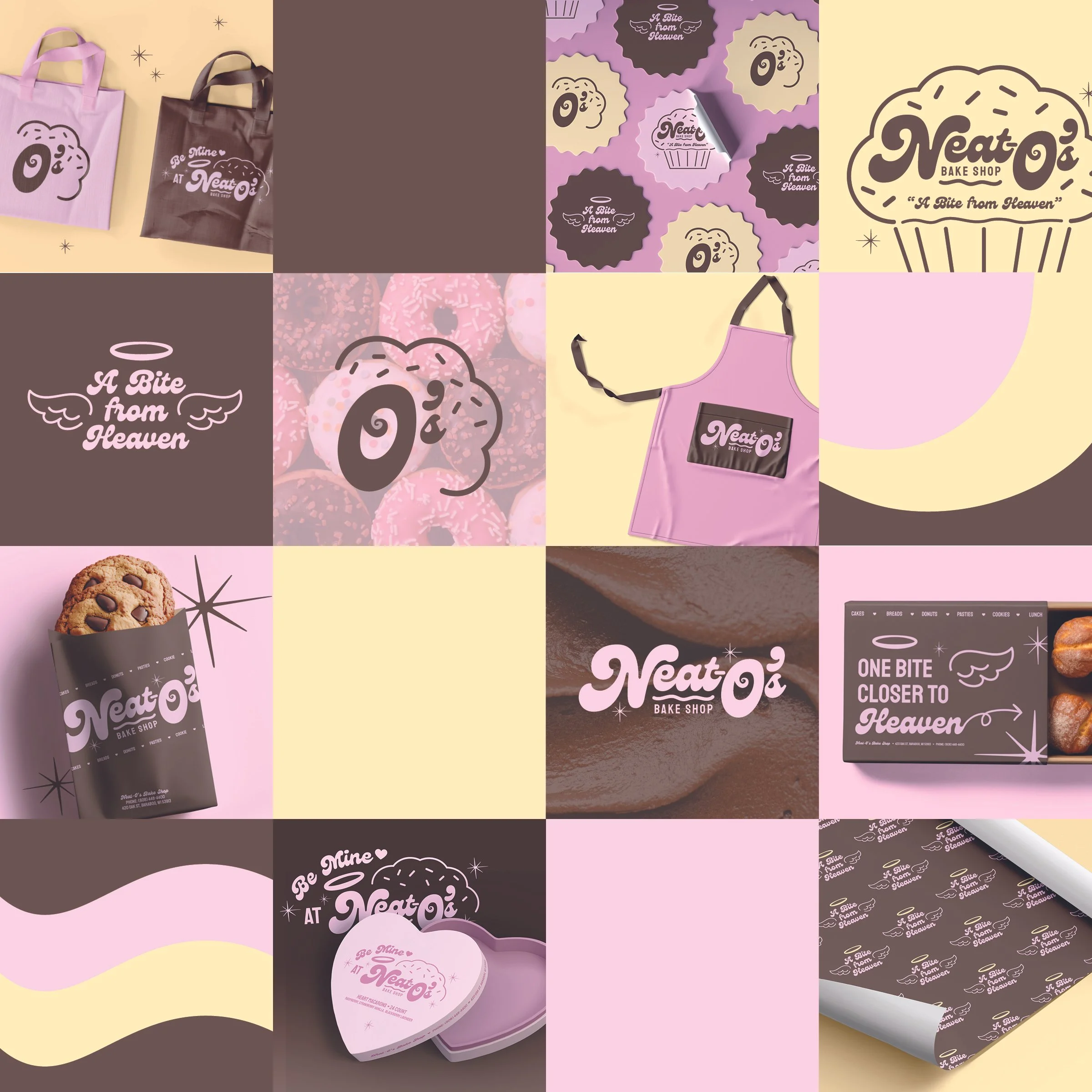 Neat-O’s Bake Shoppe is a lovely bakery in downtown Baraboo, WI. I decided to do a rebrand for them, including logo variations, color themes, and surface design. Their logo needed some help and they didn't have any thorough branding. Their style is really fun and friendly, and I wanted to keep that theme for my redesign.